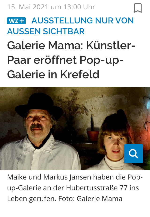 WZ Krefeld, “Galerie Mama: Künstlerpaar eröffnet Pop-Up Galerie in Krefeld”, 15.05.2021
